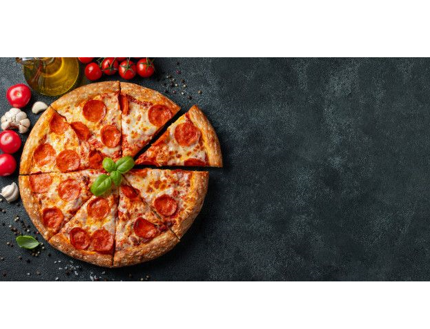 Pizza plegada en si misma, y en su interior queso mozarella, salsa de tomate e ingredientes al gusto.