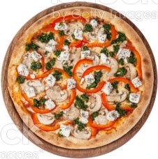 Tomates, champiñones, anchoas, albahaca y un toque de aceite de oliva.