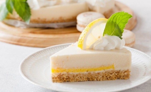 Postre frío a base de capas de galletas de vainilla con una cubierta dulce, de crema de limón.